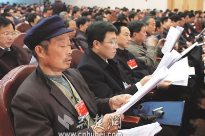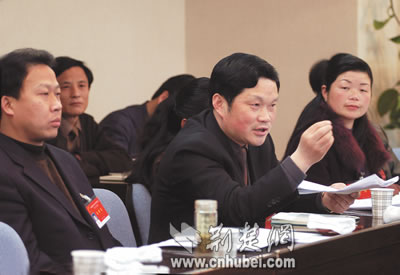 昨日下午,出席省十屆人大三次會議的天門、黃石人大代表在審議政府工作報告。