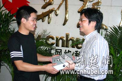 荊楚網(wǎng)副總編輯黃斌給武漢的陳先生頒發(fā)獎品