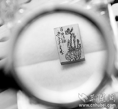 荊楚網(wǎng)(楚天都市報(bào))(記者何君輝實(shí)習(xí)生周中華)寫意的中國(guó)山水畫(huà),形態(tài)各異的花鳥(niǎo)蟲(chóng)魚(yú),憨態(tài)可掬的國(guó)寶大熊貓,風(fēng)格迥異的詩(shī)詞……承載它們的,竟然是如米粒大小的象牙片或動(dòng)物骨片。昨日,記者在微雕藝人童洪斌家中,手持放大鏡,領(lǐng)略了他的微雕絕活。