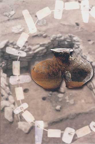 大理石和粘土巖制項飾:裝飾品(背景右,長52厘米)[相關鏈接]:20世紀中國百項考古大發(fā)現(1-20)21、大溪遺址(圖)22、城頭山遺址(圖)23、屈家?guī)X遺址(圖)24、崧澤遺址(圖)25、馬家窯遺址(圖)26、柳灣墓地(圖)27、牛河梁遺址(圖)28、城子崖遺址(圖)29、良渚文化遺址群(圖)30、石家河遺址群(圖)31、陶寺遺址(圖) 32、王城崗遺址(圖)33、齊家坪遺址(圖)34、卡若遺址(圖)35、石峽遺址(圖) 36、東灣仔北遺址(圖)37、圓山遺址(圖)38、二里頭遺址(圖)39、東下馮遺址(圖)40、夏家店遺址(圖)
