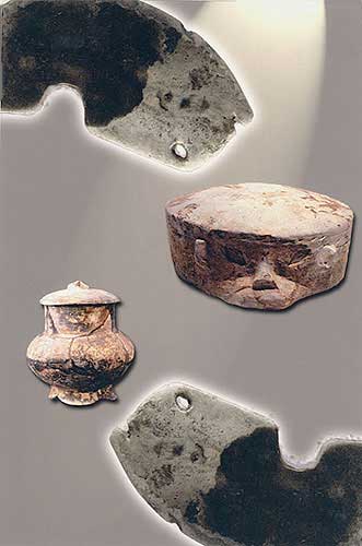魚鳥形玉璜:裝飾品(上、下,長6.6厘米)[相關(guān)鏈接]:20世紀(jì)中國百項考古大發(fā)現(xiàn)(1-20)21、大溪遺址(圖)22、城頭山遺址(圖)23、屈家?guī)X遺址(圖)24、崧澤遺址(圖)25、馬家窯遺址(圖)26、柳灣墓地(圖)27、牛河梁遺址(圖)28、城子崖遺址(圖)29、良渚文化遺址群(圖)30、石家河遺址群(圖)31、陶寺遺址(圖) 32、王城崗遺址(圖)33、齊家坪遺址(圖)34、卡若遺址(圖)35、石峽遺址(圖) 36、東灣仔北遺址(圖)37、圓山遺址(圖)38、二里頭遺址(圖)39、東下馮遺址(圖)40、夏家店遺址(圖)