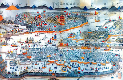 地圖顯示:武漢當(dāng)時(shí)就已形成漢口城、武昌城、漢陽城三足鼎立,成為我國(guó)的商貿(mào)重地。