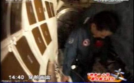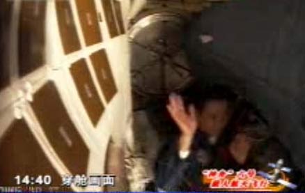 航天員準(zhǔn)備穿越軌道艙(來源于CCTV)航天員進(jìn)入軌道艙(來源于CCTV)航天員正穿越軌道艙(來源于CCTV) 航天員穿越軌道艙(來源于CCTV)