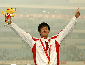 十運(yùn)會田徑比賽最精彩的大戲10月20日在奧體中心田徑場進(jìn)行,奧運(yùn)冠軍劉翔在萬眾矚目之中,以13秒10的好成績毫無懸念地奪得冠軍,這是他在全運(yùn)會中的第二次奪冠,也是他今年在國內(nèi)比賽中的第二好成績。(圖片來自新浪體育)