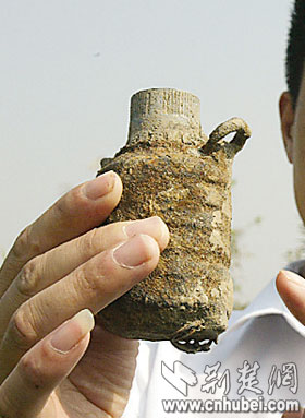 昨日上午9時30分,康先生在漢口江灘岸邊沙地上散步時,發(fā)現(xiàn)一個手雷。這個手雷直徑約5厘米,高約7厘米,銹跡斑斑,尚未引爆。據(jù)分析,這可能是日本侵略武漢時留下來的,民警隨后將它帶走。荊楚網(wǎng)楚天都市報記者劉中燦 張皓 實(shí)習(xí)生曾莉張鈺