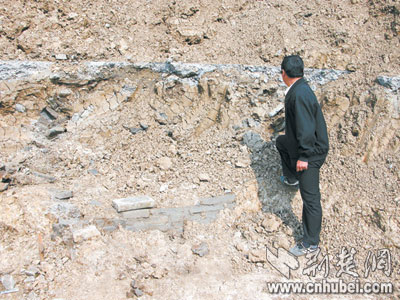 荊楚網(wǎng)消息(楚天都市報(bào))(記者沈秋)施工時(shí)挖出古墓,并不向文物部門報(bào)告,而是繼續(xù)野蠻施工,使工地內(nèi)四座千年古墓被破壞。更令人不可思議的是,襄樊、宜城兩級(jí)文物部門昨日趕至工地下達(dá)停工通知,建設(shè)單位——宜城市農(nóng)業(yè)局居然置之不理,拒不停工。
