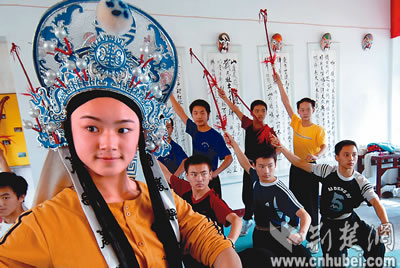 經過3年的精心編排,武漢市黃陂區(qū)楚劇團昨日將新編大型楚劇《少年花木蘭》搬上舞臺。該劇反映少年花木蘭立志報國、熱愛家鄉(xiāng)的情懷,將成為青少年教育的生動教材。這是排練時的情景。