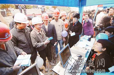 昨日,武漢市總工會大院內,農(nóng)民工“平安返鄉(xiāng)”票務趕集會正在舉行。武漢鐵路局、湖北公路客運集團等單位在這里擺臺設點,共同為農(nóng)民工提供票務預訂服務。來自武漢市16個單位的500多名農(nóng)民工代表參加了趕集會。(記者張磊江卉通訊員賀鵬攝)