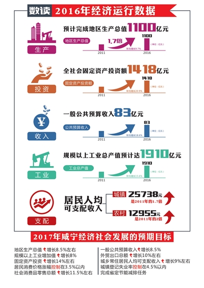 六大支柱產(chǎn)業(yè)發(fā)展壯大,占全市規(guī)模以上工業(yè)總量73.3%。完成技改投資344.3億元,年均增長(zhǎng)19.7%。戰(zhàn)略性新興產(chǎn)業(yè)加快發(fā)展,占全市比重提升至13.2%。高新技術(shù)企業(yè)突破150家,增加值達(dá)100億元。十大產(chǎn)業(yè)納入全省重點(diǎn)成長(zhǎng)型產(chǎn)業(yè)集群。一大批重大項(xiàng)目如華潤(rùn)電廠二期、奧瑞金二期、金盛蘭冶金、瀛通電子、洪盛模具、興民鋼圈、玉龍機(jī)械等建成投產(chǎn)??h級(jí)以上工業(yè)園區(qū)企業(yè)600家,園區(qū)工業(yè)總產(chǎn)值占全市總量78.5%。咸寧高新區(qū)申報(bào)國(guó)家級(jí)高新區(qū)進(jìn)展順利,赤壁、通城經(jīng)濟(jì)開(kāi)發(fā)區(qū)獲批省級(jí)高新區(qū)。特色農(nóng)業(yè)產(chǎn)業(yè)化基地366萬(wàn)畝,高標(biāo)準(zhǔn)農(nóng)田56萬(wàn)畝,規(guī)模以上農(nóng)產(chǎn)品加工企業(yè)294家,農(nóng)產(chǎn)品加工業(yè)產(chǎn)值與農(nóng)業(yè)總產(chǎn)值之比2.5:1。羊樓洞茶業(yè)獲批國(guó)家級(jí)農(nóng)業(yè)產(chǎn)業(yè)化龍頭企業(yè),實(shí)現(xiàn)了零的突破。成功創(chuàng)建國(guó)家級(jí)楠竹生產(chǎn)綜合標(biāo)準(zhǔn)化示范區(qū),通城獲批國(guó)家油茶產(chǎn)業(yè)示范園,赤壁獲批國(guó)家有機(jī)產(chǎn)品認(rèn)證示范區(qū)。獲得中國(guó)馳名商標(biāo)17件,國(guó)家地理標(biāo)志商標(biāo)15件,“三品一標(biāo)”441個(gè),全國(guó)“一村一品”示范村9個(gè)。2016年接待游客4750萬(wàn)人次,旅游總收入達(dá)到243億元,五年年均增長(zhǎng)25.9%,跨入全省第一方陣。連續(xù)成功舉辦“國(guó)際溫泉文化旅游節(jié)”,榮獲首批全國(guó)旅游標(biāo)準(zhǔn)化示范城市、首批國(guó)家級(jí)旅游改革創(chuàng)新先行區(qū)。電子商務(wù)發(fā)展迅猛,通山、赤壁電子商務(wù)進(jìn)農(nóng)村綜合示范全省領(lǐng)先,綠購(gòu)網(wǎng)成為全省電子商務(wù)示范創(chuàng)建企業(yè)。商貿(mào)物流加快發(fā)展,全社會(huì)貨運(yùn)量突破1億噸。中華雞湯小鎮(zhèn)開(kāi)業(yè),沃爾瑪、大潤(rùn)發(fā)等知名企業(yè)入駐。