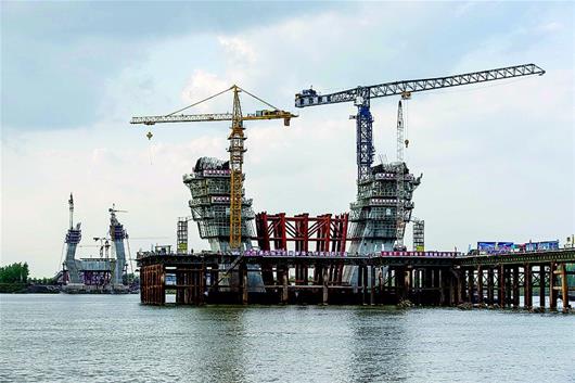 湖北日報訊 8日,嘉魚長江公路大橋施工現(xiàn)場,工程建設者在主塔激戰(zhàn)正酣。嘉魚長江大橋是嘉魚縣和洪湖市之間的一座公路斜拉橋,與武漢城市圈環(huán)線高速公路洪湖段和咸寧西段貫通,大橋全長4.7公里,按雙向六車道高速公路標準建設,預計2019年通車。目前,橋樁基、承臺全部施工完畢。