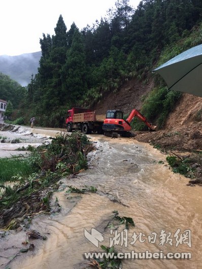 湖北日?qǐng)?bào)網(wǎng)訊(全媒體記者張愛(ài)虎、通訊員汪淑琴、陳迪新)7月1日上午9點(diǎn),崇陽(yáng)縣港口鄉(xiāng)北山村五組發(fā)生山體滑坡,2000多立方米的泥沙樹(shù)木,從半山腰傾瀉而下,瞬間堵塞河道,沖向農(nóng)田,十幾畝農(nóng)田受損,幸無(wú)人員傷亡。駐北山村的殘聯(lián)農(nóng)村工作隊(duì)正在該組查看汛情,見(jiàn)狀立刻疏散群眾。崇陽(yáng)縣委縣政府高度重視,馬上轉(zhuǎn)移群眾,確保生命安全,省地質(zhì)專家、鄉(xiāng)政府干部和設(shè)備馬不停蹄趕到現(xiàn)場(chǎng)搶險(xiǎn),疏散群眾、掛繩隔離,豎立地質(zhì)警示標(biāo)志,用挖機(jī)清理路面塌陷的石頭。