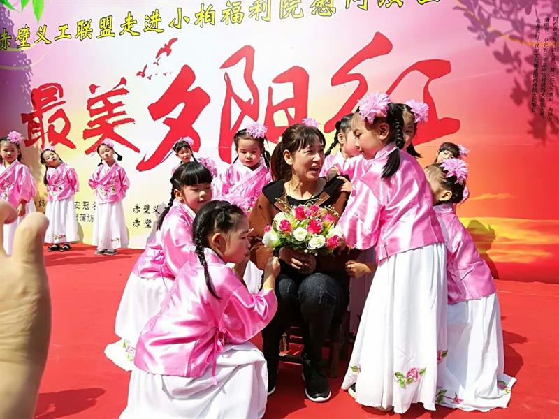 湖北日?qǐng)?bào)網(wǎng)訊(全媒體記者張文龍、通訊員黃柱、張海燕)“因?yàn)槲覀兪且患胰?,相親相愛的一家人……”10月28日,在赤壁市赤壁鎮(zhèn)小柏村福利院,《相親相愛一家人》的歌聲響徹天際。當(dāng)天,農(nóng)歷九月初九,是我國(guó)傳統(tǒng)節(jié)日重陽(yáng)節(jié),來自蒲紡歌舞團(tuán)、赤壁中醫(yī)院、蘭心惠質(zhì)旗袍群、赤壁市機(jī)關(guān)幼兒園等單位的志愿者,相約來到福利院,陪58位老人歡度佳節(jié)。