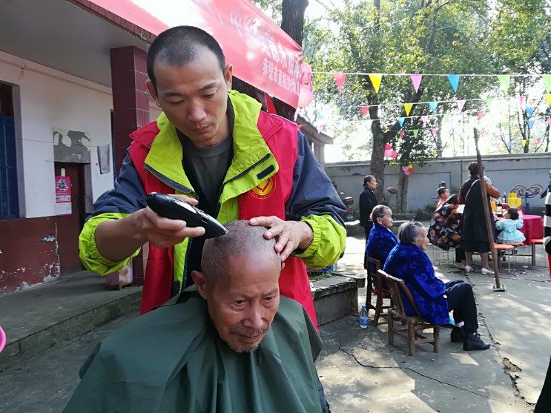 當(dāng)天上午8時(shí),志愿者們走進(jìn)福利院。一下子來這么多人,老人們高興得合不攏嘴。拉完家常,志愿者們開始分工做服務(wù),有搭舞臺(tái)的,有準(zhǔn)備食材做菜、做飯、包餃子的、有擺桌椅板凳的、有分配水果零食的、有為老人理發(fā)、按摩、修指甲的、中醫(yī)院的護(hù)士免費(fèi)給老人做體檢、小朋友為老人端茶等。
