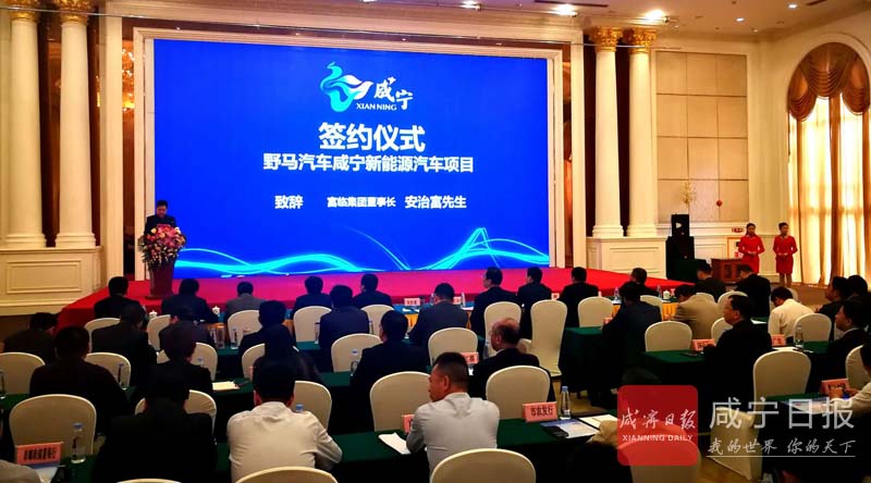 4月12日,咸寧市舉行野馬汽車(chē)咸寧新能源汽車(chē)項(xiàng)目簽約儀式。市委書(shū)記、市人大常委會(huì)主任丁小強(qiáng),富臨集團(tuán)董事長(zhǎng)安治富,市委副書(shū)記、市長(zhǎng)王遠(yuǎn)鶴,富臨集團(tuán)副總經(jīng)理藤明波,四川野馬汽車(chē)股份有限公司總經(jīng)理譚建偉見(jiàn)證簽約。