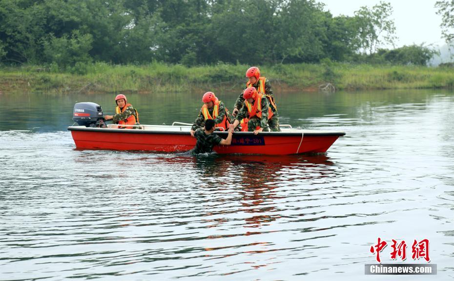 湖北赤壁消防舉行防汛抗洪演練。 徐聰聰 攝