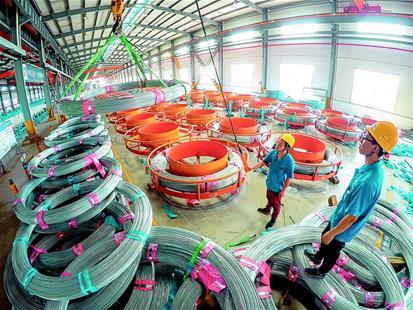 8月10日,在嘉魚經(jīng)濟(jì)開發(fā)區(qū)官橋工業(yè)園內(nèi),湖北歐維姆纜索制品有限公司員工在制造最后一批武漢楊泗港長江大橋的主纜索股。楊泗港長江大橋懸索橋跨度在國內(nèi)排名第一、世界排名第二。每條主纜由271根索股組成,每根索股長度為2836米、重量約62噸,每根索股由91根鋼絲組成,其鋼絲直徑更大、強度更高,在國內(nèi)屬首次應(yīng)用。(湖北日報全媒記者 陳勇通訊員謝燕子攝)