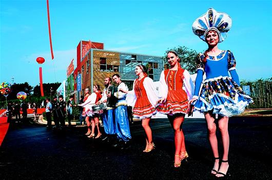 當(dāng)日,經(jīng)過一年多時間建設(shè)的“萬畝茶園·俄羅斯方塊小鎮(zhèn)”揭開面紗。茶園入口,彩球飛揚、人流如織,俄羅斯少女翩翩起舞。走入茶園,齊腰的茶樹漫山遍野、油綠發(fā)亮,異域風(fēng)情的商業(yè)街、喀秋莎會客廳、四季茶溪花海令人眼前一亮。萬畝茶園原是羊樓洞茶場砂子嶺分場所在地,連片的茶園超過萬畝,主要用于制作青磚茶,是赤壁聞名的旅游地標(biāo)之一。重新規(guī)劃建設(shè)的萬畝茶園,預(yù)計總投資5.4億元,擺脫原有單一茶業(yè)種植,瞄準(zhǔn)建設(shè)全球首家茶文化俄羅斯風(fēng)情主題公園。