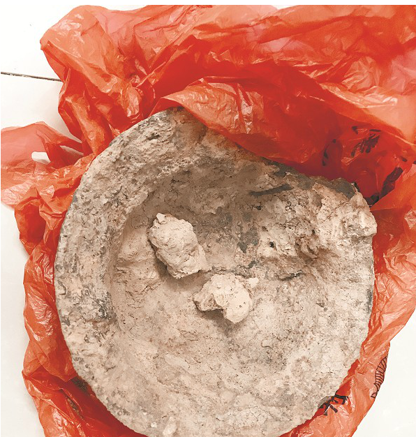 孫師傅說,當(dāng)村民趕過去的時候,墓穴已被挖開,不少周邊村民都前來圍觀,有人還在墓穴周圍找到了一些銅錢。他們當(dāng)即報警,當(dāng)日下午,崇陽縣博物館館長匡文、金塘派出所刑偵人員趕到現(xiàn)場進行了勘查。據(jù)目擊村民介紹,盜挖古墓的是該村的宋某和退休人員盧某,共挖出了6件文物。當(dāng)天,在警方調(diào)查時,宋某交出了一個破罐、一個鐵器等物件。