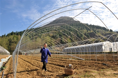 20日,崇陽縣銅鐘鄉(xiāng)村民正在忙著搭建鋼架大棚,掀起種植玫瑰和中藥材熱潮。