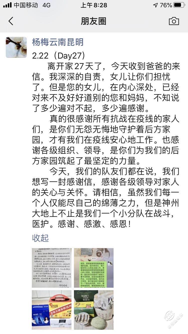 這樣一個團隊,只是無數(shù)個同樣戰(zhàn)斗在抗疫一線的湖北醫(yī)護的縮影,是無數(shù)個“前方有你,后方有我”的展現(xiàn)。作為一個和他們一起奮戰(zhàn)了28天的云南醫(yī)療隊隊員,我更能見證湖北的醫(yī)護人員第一時間的擔當,體會到他們后方家園默默的陪伴與支持。