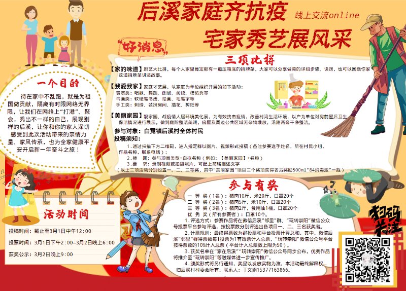 因?yàn)椋摯逭谂e辦“后溪家庭齊抗疫 宅家秀藝展風(fēng)采”活動!