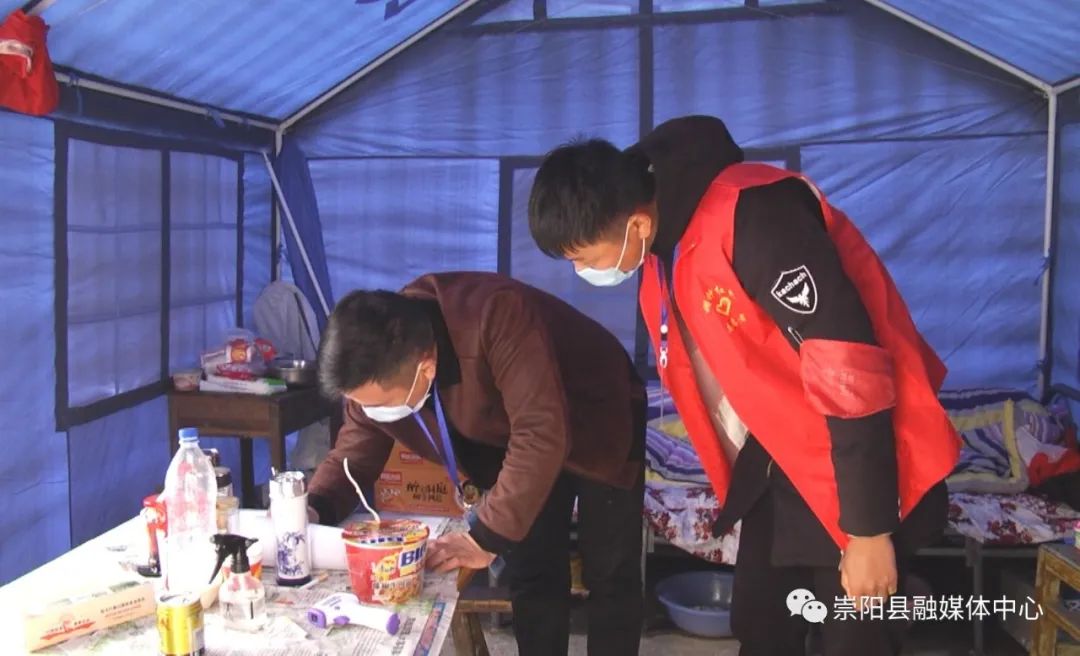 據(jù)了解,殷帥值守的是馬橋村7組的卡點,這個卡點與白霓鎮(zhèn)交界,人口流動頻繁。為了守好卡點,殷帥每天24小時值守在這里,剛開始值守點沒有帳篷,只有一個簡單的雨棚和一個小床,惡劣的環(huán)境加上寒冷的天氣,讓殷帥沒少吃苦頭。由于晚上光線暗、氣溫低,總有村民想趁機偷偷過卡,“牛脾氣”的殷帥干脆抱床被子,就坐在外面“死”守,硬是沒放過一個人。