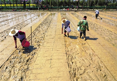 3月18日,咸安區(qū)俊敏種植專業(yè)合作社的社員們正忙著鋪秧盤、撒谷種。日前隨著氣溫回升,在做好新冠肺炎疫情防控的基礎(chǔ)上,咸安區(qū)搶抓農(nóng)時開展早稻春播生產(chǎn),組織當(dāng)?shù)厮膫€專業(yè)合作社搭建中型水稻集中育秧基地2個、小型水稻集中育秧基地2個,通過規(guī)?;?、標(biāo)準(zhǔn)化集中育秧提高種植效率,為村民提供水稻集中育秧和機(jī)械化插秧一條龍托管服務(wù),助力當(dāng)?shù)剞r(nóng)民早稻春播。