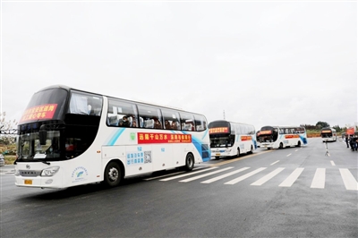 3月30日上午9時(shí)30分,在通山縣文體中心,12輛 “點(diǎn)對(duì)點(diǎn)、一站式”輸送返“粵”務(wù)工人員的愛(ài)心大巴專車,載著320名務(wù)工人員一路向南,前往深圳等地返崗復(fù)工,這是目前咸寧市人數(shù)最多的一次“點(diǎn)對(duì)點(diǎn)”輸送。