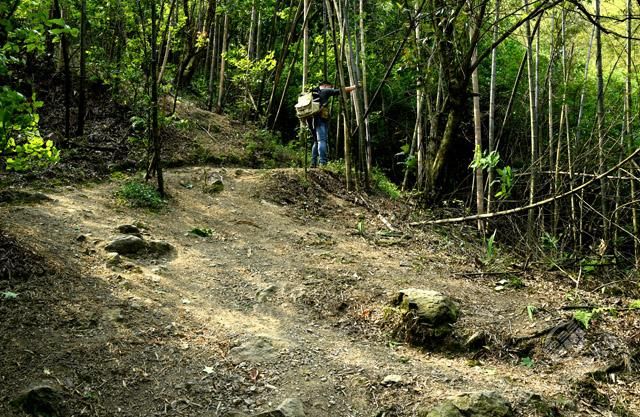 從烈士陵園旁沿著彎彎曲曲的山路,艱難地穿梭在險峻的山間,探尋曾經發(fā)生過故事的革命之地。經過“百步十八彎”“愛泉”“云天井”,歷經一個多小時到達“虎歇坪”,終見紅艷艷的杜鵑花,開在崎嶇險路兩旁。