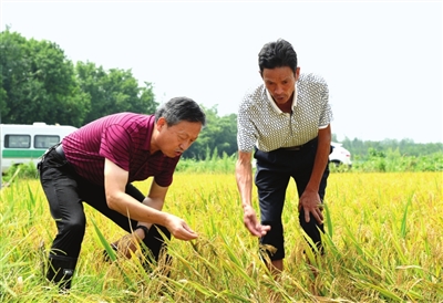 排澇搶收減損失 14日,赤壁農(nóng)業(yè)農(nóng)村局產(chǎn)業(yè)股股長錢直榮和農(nóng)藝師金剛來到車埠鎮(zhèn)梅湖村指導(dǎo)村民搶收搶種。看到農(nóng)技人員下到田中,周邊農(nóng)戶都圍攏過來,期待他們的技術(shù)指導(dǎo)。
