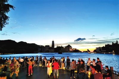 8月16日,記者在九宮山風(fēng)景區(qū)看到,云中湖畔游客如潮。各大賓館、酒店客房一鋪難求,各大餐館生意紅火。據(jù)了解,在“與愛同行,惠游湖北,樂享咸寧”活動的推動下,僅8月9日到16日,九宮山接待游客突破4.4萬人次,同比增長250%,創(chuàng)歷史最高紀(jì)錄。