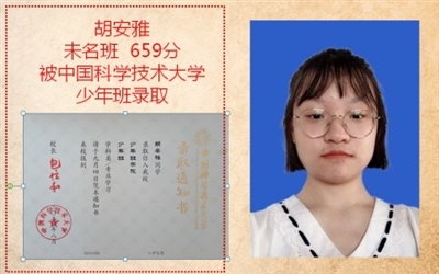8月12日,從省招辦傳來喜訊:來自全國各地的129名“天才少年”來合肥參加中國科學(xué)技術(shù)大學(xué)“少年班”復(fù)試的角逐,共計錄取48名考生。湖北僅錄4人,咸高獨(dú)占3人!余亦可、陳龍、胡安雅同學(xué)經(jīng)過嚴(yán)格挑選,脫穎而出,被中科大“少年班”錄??!吳書恒同學(xué)被中科大“少創(chuàng)班”錄取!郭雷、劉瑞同學(xué)被空軍航空大學(xué)錄??!周子吉吉、饒冶、朱紫珩、趙子廉、施熠被清華大學(xué)、上海交大、復(fù)旦大學(xué)、浙江大學(xué)錄取。