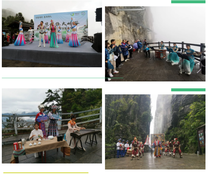 恩施大峽谷七星寨景區(qū)索道上站觀景平臺上,隨著恩施市文旅形象歌曲《情漫恩施》的精彩呈現(xiàn),精品演藝和非遺進(jìn)景區(qū)系列活動正式拉開帷幕。男聲獨(dú)唱《大峽谷有哈數(shù)》、儺戲表演《開葷敬酒》、歌舞《我在恩施等著你》等精品演出節(jié)目向游客送上一場精彩的文化藝術(shù)盛宴,同時(shí)獻(xiàn)上一份特別的中秋國慶雙節(jié)禮物。