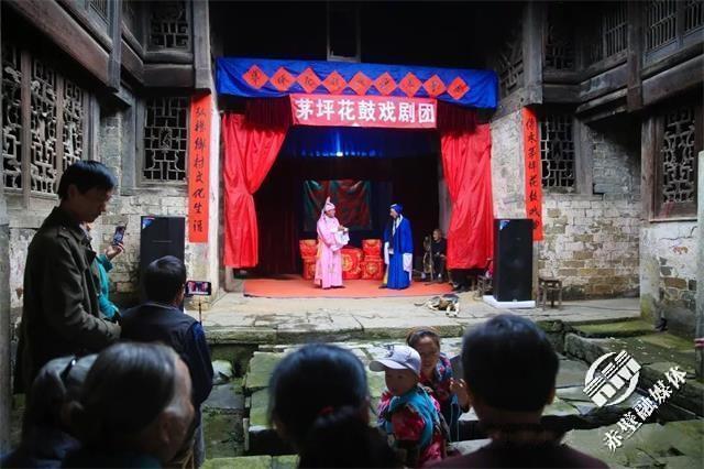 茅坪坐落于葛仙山腳下,在茅坪高屋這個幾輩人傳下來的大宅子里一支由村民們自發(fā)組建的茅坪花鼓戲劇團每周四風雨無阻在此排練或演出。