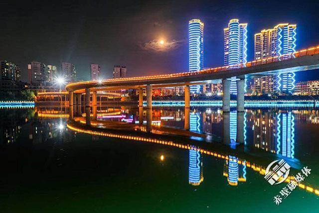 傍晚,燈火點亮了赤壁的夜經(jīng)濟