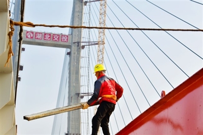 “今年春節(jié)因為趕工期和疫情防控,我還是選擇在工地過年?!?月13日,大年初二,記者走進(jìn)赤壁長江公路大橋建設(shè)現(xiàn)場,30出頭的尹振君正和同事研究合龍技術(shù)方案,他已經(jīng)連續(xù)4年沒回家過年了。他們身后,大橋合龍僅剩最后的40米。