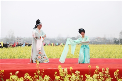 精彩的文藝演出、極具地方風(fēng)情的民俗表演和國家非物質(zhì)文化遺產(chǎn)提琴戲演唱,與花海交相輝映,為前來觀賞的人們帶來了絕美的視覺盛宴。開幕活動(dòng)結(jié)束后,開始游玩賞景,游客們或全家出動(dòng),或情侶相攜,或友人相伴,邊感嘆油菜花的美,邊呼朋引伴一起拍照留念,人花相映襯,美不勝收。除了賞花,大家還紛紛品嘗特色美食,購買當(dāng)?shù)靥厣r(nóng)產(chǎn)品。