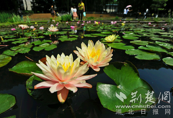 睡蓮展示區(qū),“水中女神”已經(jīng)蘇醒,進入超長花期。印度紅睡蓮、埃及藍睡蓮、墨西哥黃睡蓮、中國延藥睡蓮、泰國招財女神……武漢植物園睡蓮池臥虎藏龍,展示著世界各地的睡蓮名品。仿造睡蓮花瓣建造成的“八色睡蓮池”已經(jīng)上色完畢,紫、藍、黃、粉、紅,色彩大膽絢爛,如意蘊流淌的藝術家畫作。