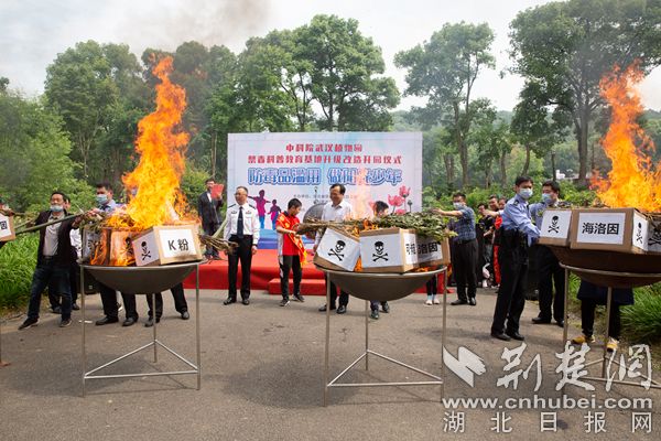 荊楚網(wǎng)(湖北日?qǐng)?bào)網(wǎng))訊(通訊員陳長麗)5月21日上午,中科院武漢植物園舉行了禁毒科普教育基地升級(jí)改造開園儀式。經(jīng)過半年的升級(jí)改造,全新的罌粟活體展示區(qū)揭開面紗,升級(jí)后的禁毒教育基地在毒品原植物的展示和禁毒教育的形式上將更加豐富。正值國際禁毒日到來之際,現(xiàn)場(chǎng)還舉行了“防毒品濫用,做陽光少年”為主題的禁毒宣教活動(dòng),在社會(huì)公眾的見證下,青少年代表焚燒罌粟,向毒品說“不”。