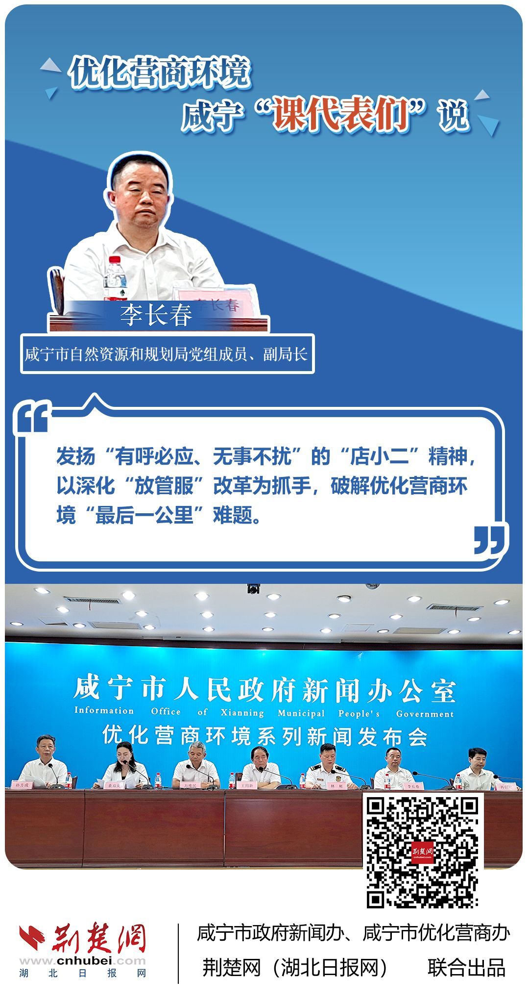 荊楚網(wǎng)(湖北日?qǐng)?bào)網(wǎng))訊(記者 王焱堯 田城 呂鑒蕾 通訊員 張永紅 程蒙)打造寬松便捷的準(zhǔn)入環(huán)境,將服務(wù)部門“一把手”推到窗口,實(shí)行消防行政許可辦理“雙軌制”,加大誠信體系建設(shè)和知識(shí)產(chǎn)權(quán)保護(hù)力度……7月20日,咸寧市直單位9名優(yōu)化營商環(huán)境發(fā)言人亮相新聞發(fā)布會(huì),圍繞“優(yōu)化營商環(huán)境”這一主題,談做法、論經(jīng)驗(yàn)、說打算。