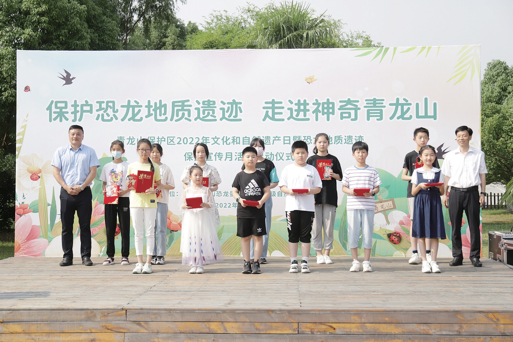 “讓我們行動起來,爭做恐龍地質(zhì)遺跡保護的小衛(wèi)士,像保護眼晴、愛惜生命一樣保護好恐龍地質(zhì)遺跡,不偷挖、盜挖恐龍蛋,不交易、買賣恐龍蛋……”小記者代表李華博、李坤陽現(xiàn)場發(fā)出保護文化和自然遺產(chǎn)倡議,希望現(xiàn)場的小記者們行動起來,爭做恐龍地質(zhì)遺跡保護的小衛(wèi)士、恐龍地質(zhì)遺跡保護的宣傳員和現(xiàn)代科學知識的傳播者,傳播珍愛地球,保護環(huán)境的理念,自覺踐行“綠水青山就是金山銀山”的發(fā)展理念,共建人與自然和譜共生的美麗家園。