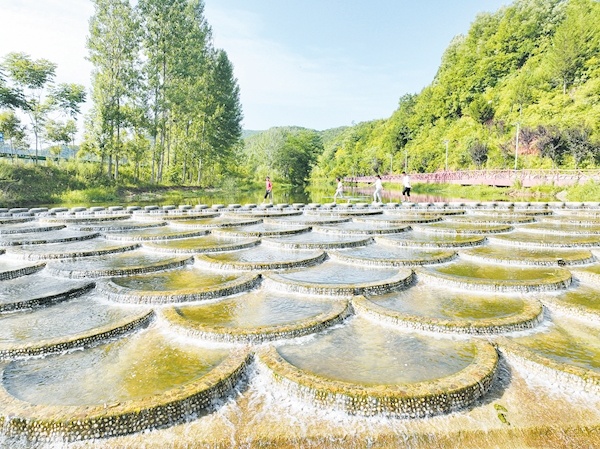 日前,游客在房縣馬尾河化龍堰鎮(zhèn)上灣村段人工蓮花瀑布前的磨盤壩上游玩。近年來,房縣全域?qū)嵤┖恿魉鷳B(tài)修復(fù),提升轄區(qū)314條河流水質(zhì),沿河建設(shè)濕地公園、水體景觀等,吸引游客前來觀光,實現(xiàn)“水景觀、水生態(tài)、水經(jīng)濟(jì)”有機(jī)融合。