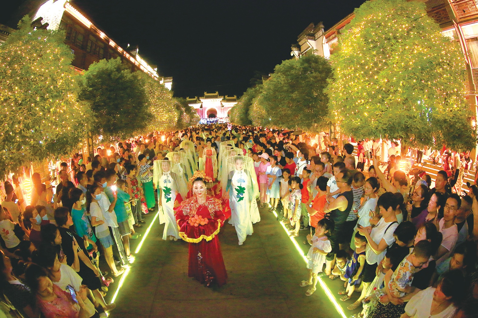 15日至16日晚,在武當(dāng)山玉虛街舉行的非遺廟會(huì),點(diǎn)亮夜經(jīng)濟(jì)。除了極具看點(diǎn)的武當(dāng)非遺文化展演,無人機(jī)天幕秀也令人震撼,此外,琳瑯滿目的美食極大滿足了游客的味蕾體驗(yàn),紅火熱鬧的玉虛街已成為游客夜游武當(dāng)?shù)拇蚩ǖ?。圖/記者 朱江 特約記者 范學(xué)峰