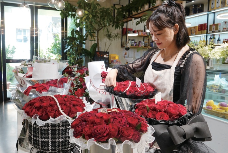 據(jù)這些花店老板介紹,訂花群體普遍為二三十歲的年輕人,送花給戀人,增加儀式感。同時(shí),也有一些女性到花店自行購(gòu)買(mǎi)鮮花擺放在家里,增添浪漫節(jié)日氛圍。