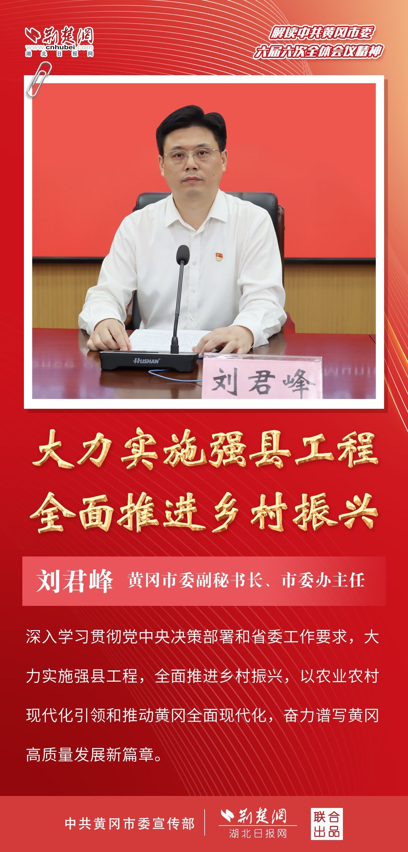 荊楚網(wǎng)(湖北日?qǐng)?bào)網(wǎng))訊(記者胡小軍、劉璐 通訊員郭斯)9月4日,中共黃岡市委六屆六次全體會(huì)議精神解讀新聞發(fā)布會(huì)召開(kāi),市委辦主要負(fù)責(zé)人介紹全會(huì)情況,并解讀全會(huì)精神。