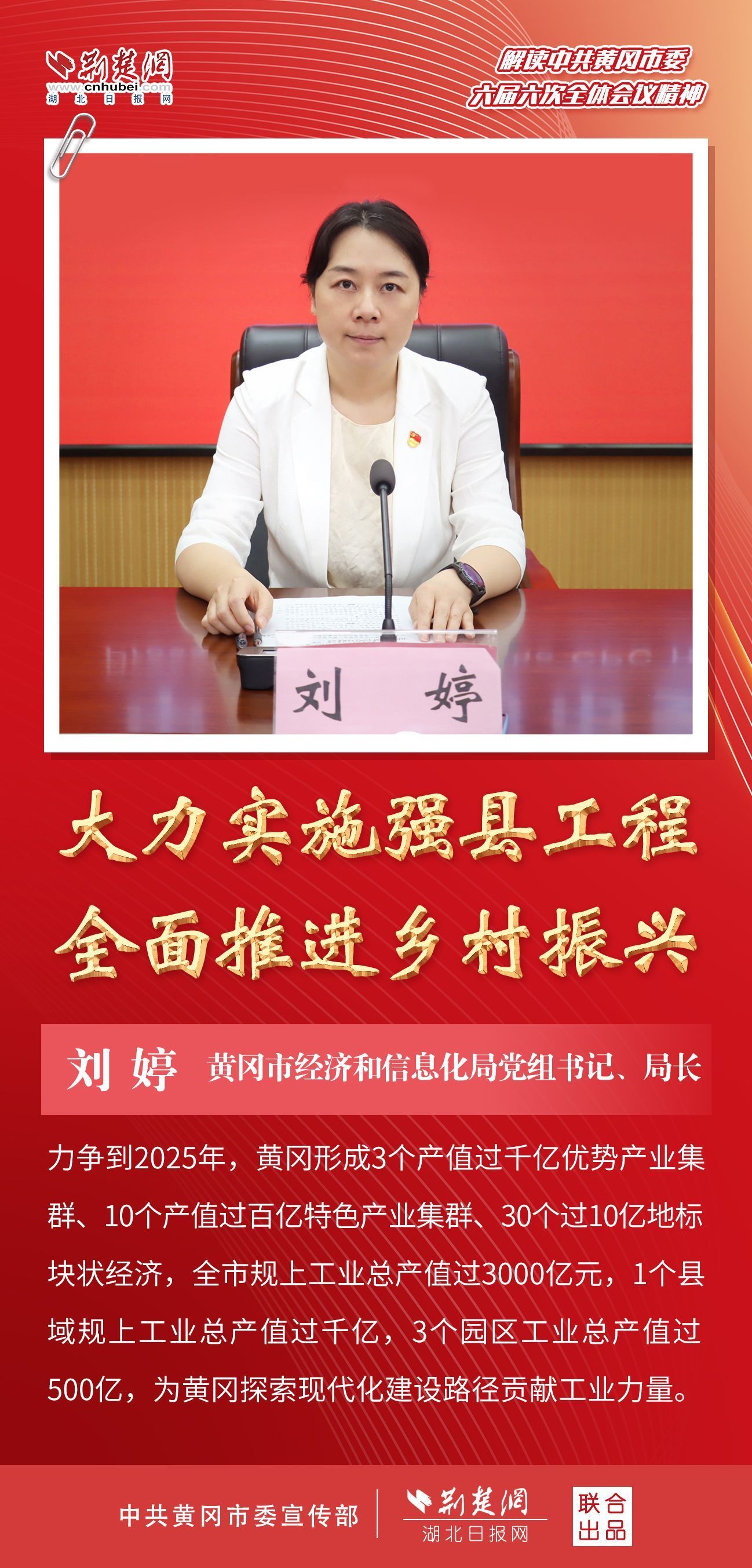 隨后,黃岡市住房和城鄉(xiāng)建設(shè)局、市經(jīng)濟(jì)和信息化局、市農(nóng)業(yè)農(nóng)村局主要負(fù)責(zé)人分別圍繞“‘四區(qū)聯(lián)動(dòng)’城市更新”“推進(jìn)制造強(qiáng)縣 培育特色產(chǎn)業(yè)集群”和“強(qiáng)化供應(yīng)鏈思維 推動(dòng)農(nóng)業(yè)產(chǎn)業(yè)轉(zhuǎn)型升級(jí)”等內(nèi)容作主題發(fā)布。