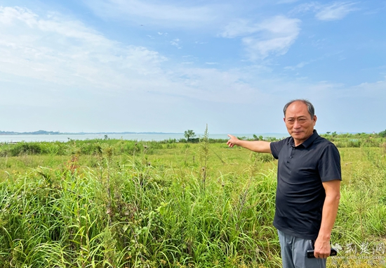 馮東明手指“圍網(wǎng)種草”水域。記者 金康 攝