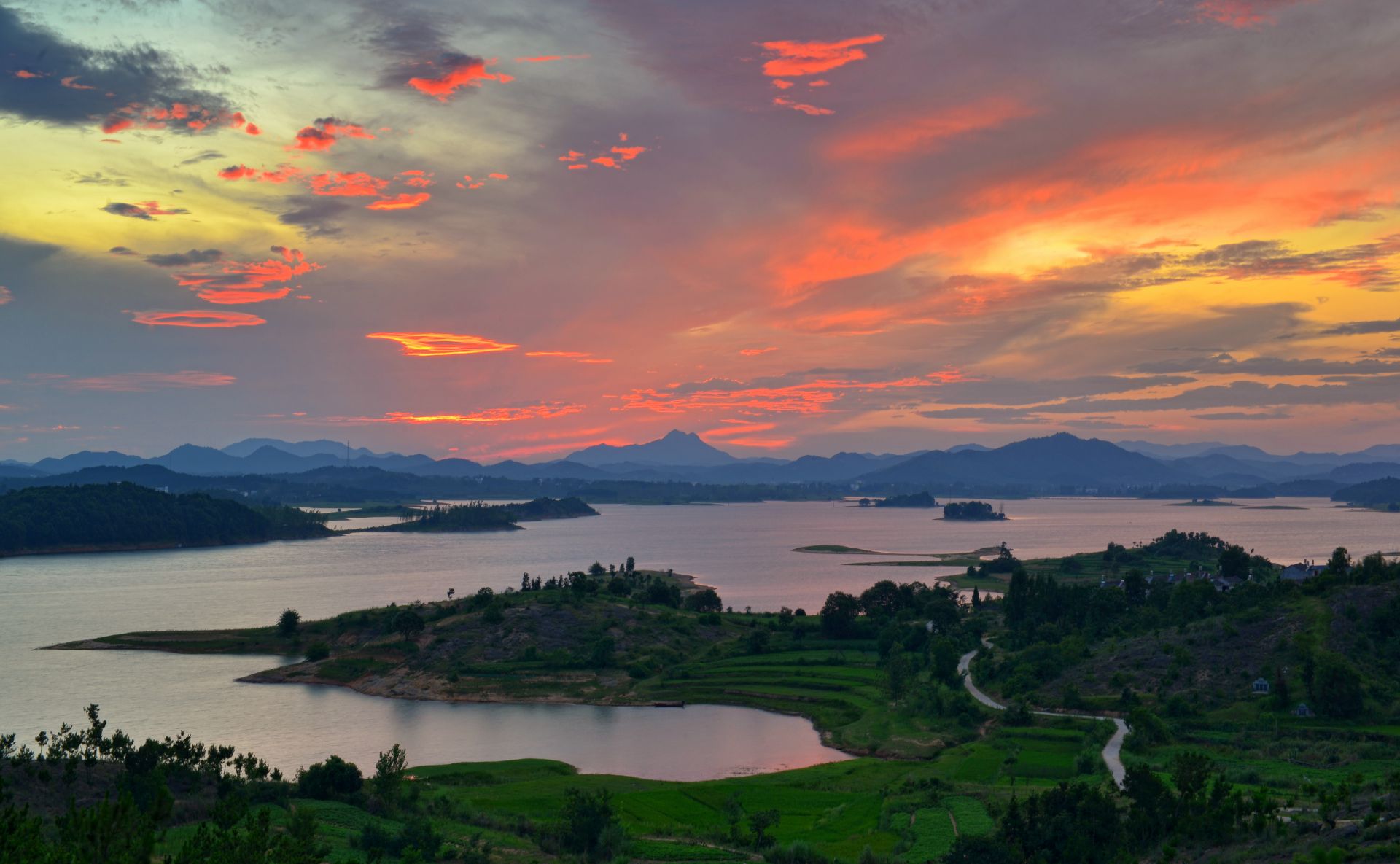 金秋送爽,碩果迎枝,紅綠融合,山水順河。