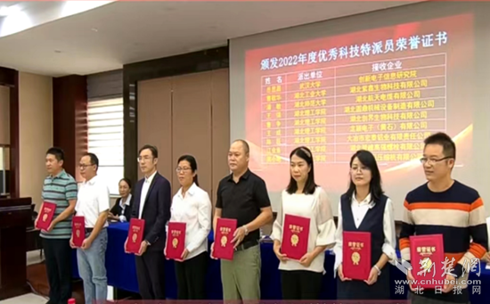 活動現(xiàn)場,9名黃石市2022年度優(yōu)秀“企業(yè)科技特派員”站上領(lǐng)獎臺。其中,湖北理工學院優(yōu)秀“企業(yè)科技特派員”占了三分之二。