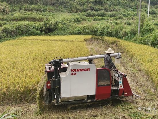 荊楚網(wǎng)(湖北日報網(wǎng))訊(通訊員 吳儀)11月6日,通山縣南林橋鎮(zhèn)湄溪村鄉(xiāng)林合作社再生稻種植基地上千余畝水稻大部分收割完畢,收割機在稻田里穿梭收尾,一株株稻穗換來金燦燦的稻粒,鄉(xiāng)間沃野一派豐收景象。